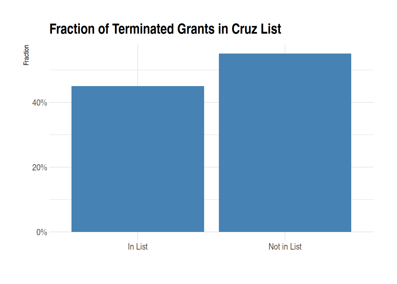 What proportion of the terminated programs are found in the list of grants targeted by Ted Cruz?