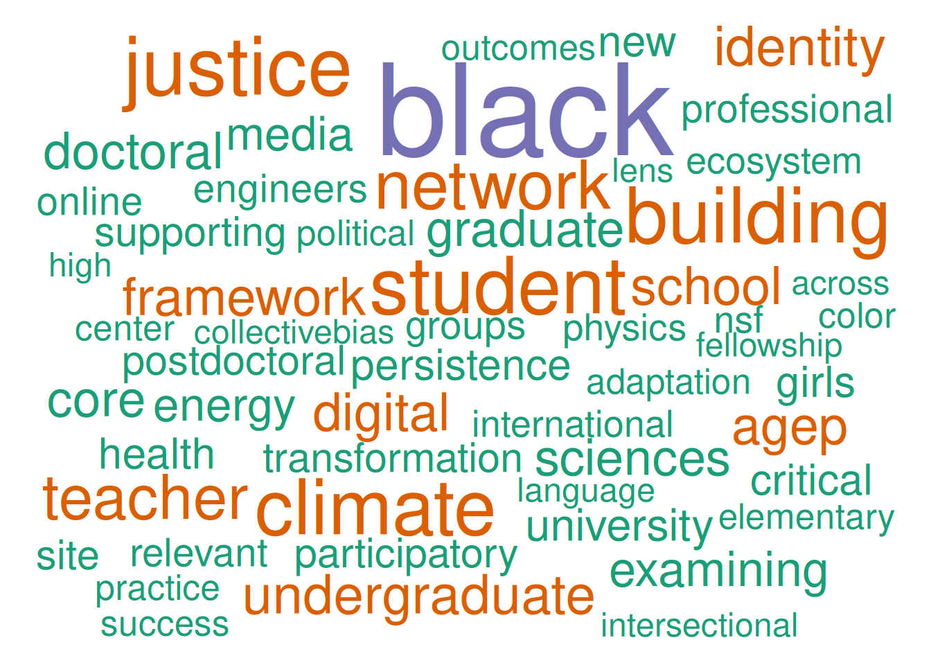 This word cloud shows the most common words in titles and abstracts of terminated grants.